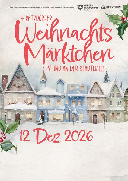 Unser Highlight zum Jahresende ist sicherlich unser Betzdorfer Weihnachtsmärktchen in und um die Stadthalle. Kulinarischer und musikalischer Genuss im Glanze gemütlicher Weihnachtsbeleuchtung.
