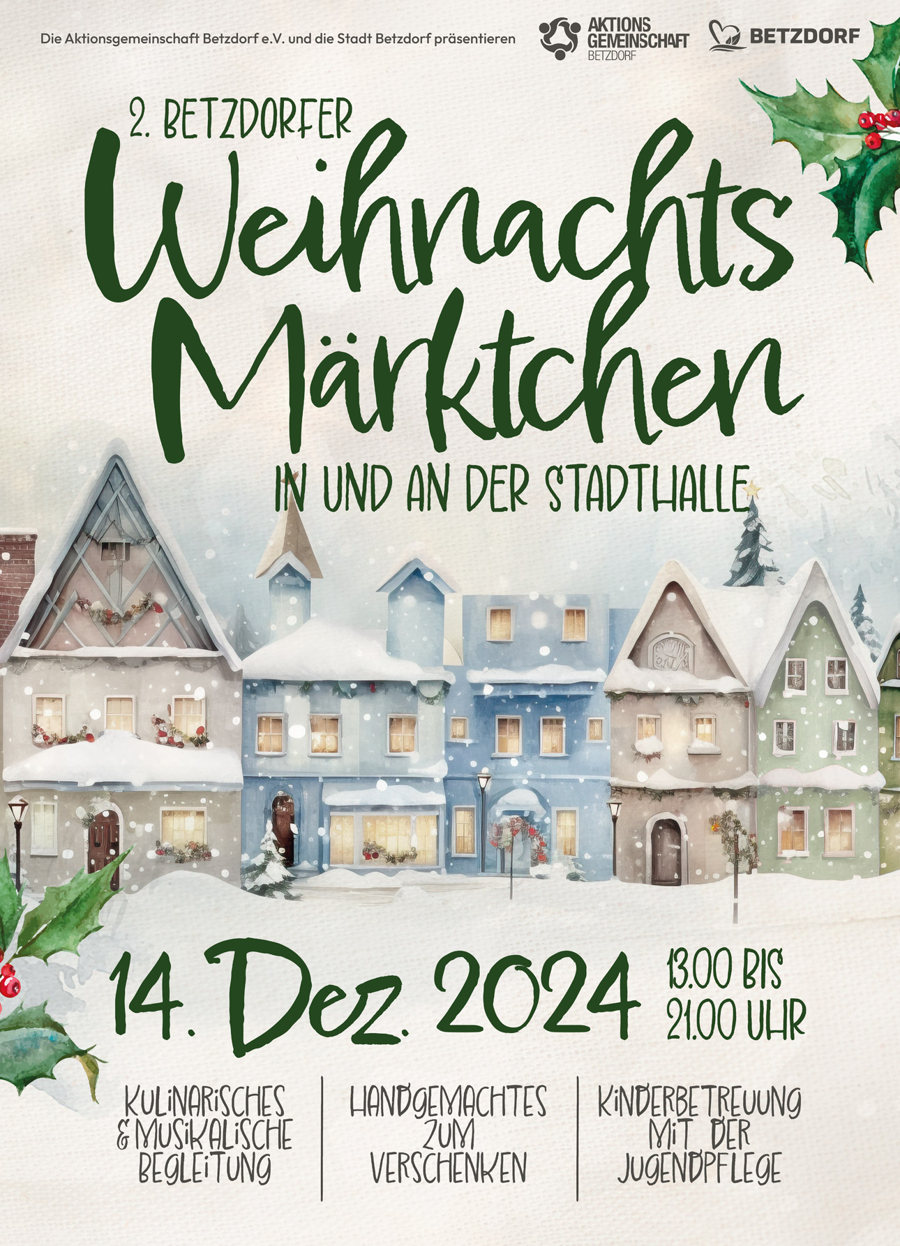 Unser Highlight zum Jahresende ist sicherlich unser Betzdorfer Weihnachtsmärktchen in und um die Stadthalle. Kulinarischer und musikalischer Genuss im glanze gemütlicher Weihnachtsbeleuchtung.